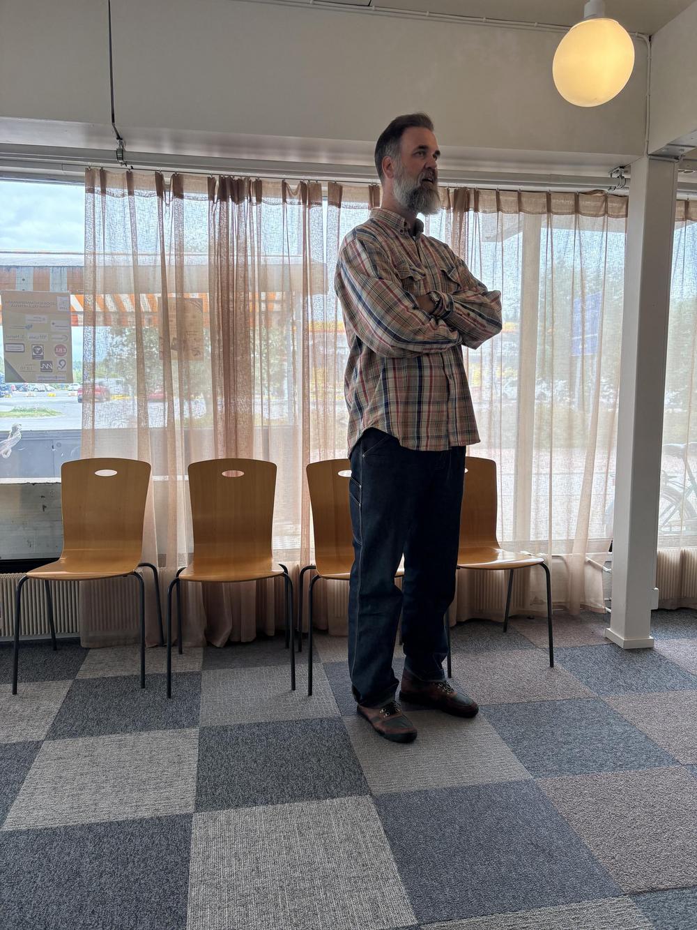 Liedon hyvinvointijohtaja Jani Äijälä tiistaitapaamisessa. Hienoa, että kaupungin vastuuhenkilöt käyvät vierailemassa ja kertomassa työstään eri yhdistyksissä. Samalla vuoropuhelun myötä nousevat esille kehitystoiveemme ja mahdollisuutemme vaikuttaa ikäihmisten hyvinvointiin.