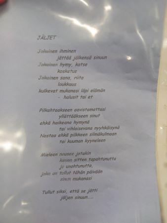 Lisäksi Taitavat kadet käsityökerhon ohjaaja ja hallituksen jäsen Pirkko Suomiselle ojennettiin jäähyväislahja hänen muuttaessaan paikkakunnalta. Kiitokseksi saimme Pirkolta, hänen itsekirjoittamansa runon, josta viereinen kuva.