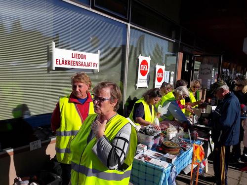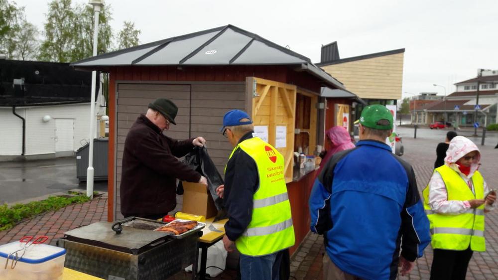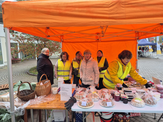Mikkelinmarkkinat 2025. Sateesta huolimatta tunnelma oli ripas ja iloinen. Tässä meidän teltalla työskenteleviä.